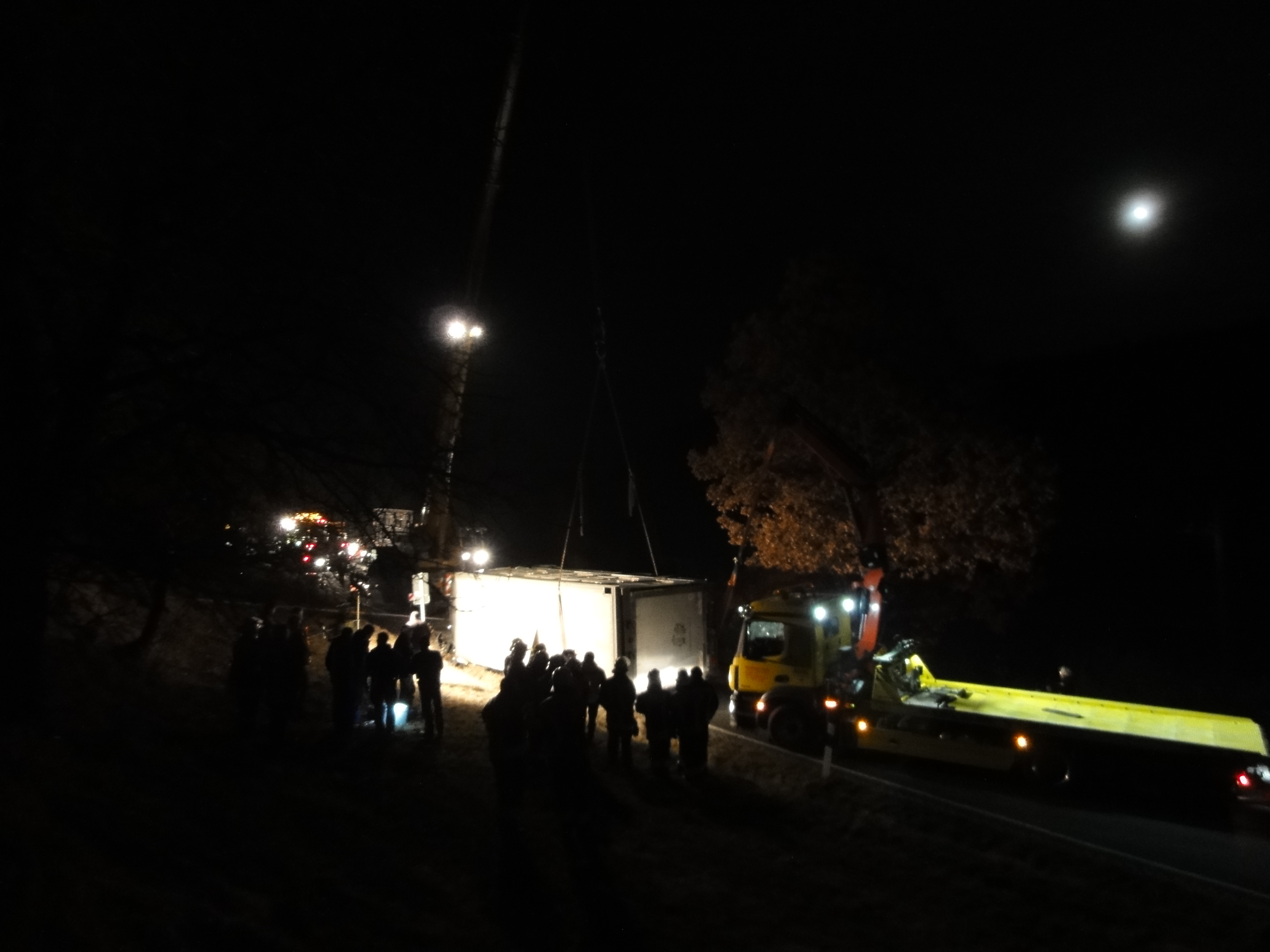 Am Abend des 14.03.2017 wurden wir zu einem Verkehrsunfall auf der Staatsstraße 2292 am Ortsausgang von Frickenhausen Richtung Geckenau alarmiert. Aus noch ungeklärter Ursache war ein mit ca. 90 Schweinen beladener LKW mit Anhänger in einer Kurve von der Fahrbahn abgekommen und umgekippt. Da ca. 30 Schweine außerhalb des Fahrzeuges umherliefen musste die Staatsstraße voll gesperrt werden. Der Fahrer blieb unverletzt, am Fahrzeug entstand Totalschaden. Die Bergung, bei der die Feuerwehren aus Bastheim, Ostheim und Mellrichstadt unterstützten, zog sich bis in die späte Nacht.